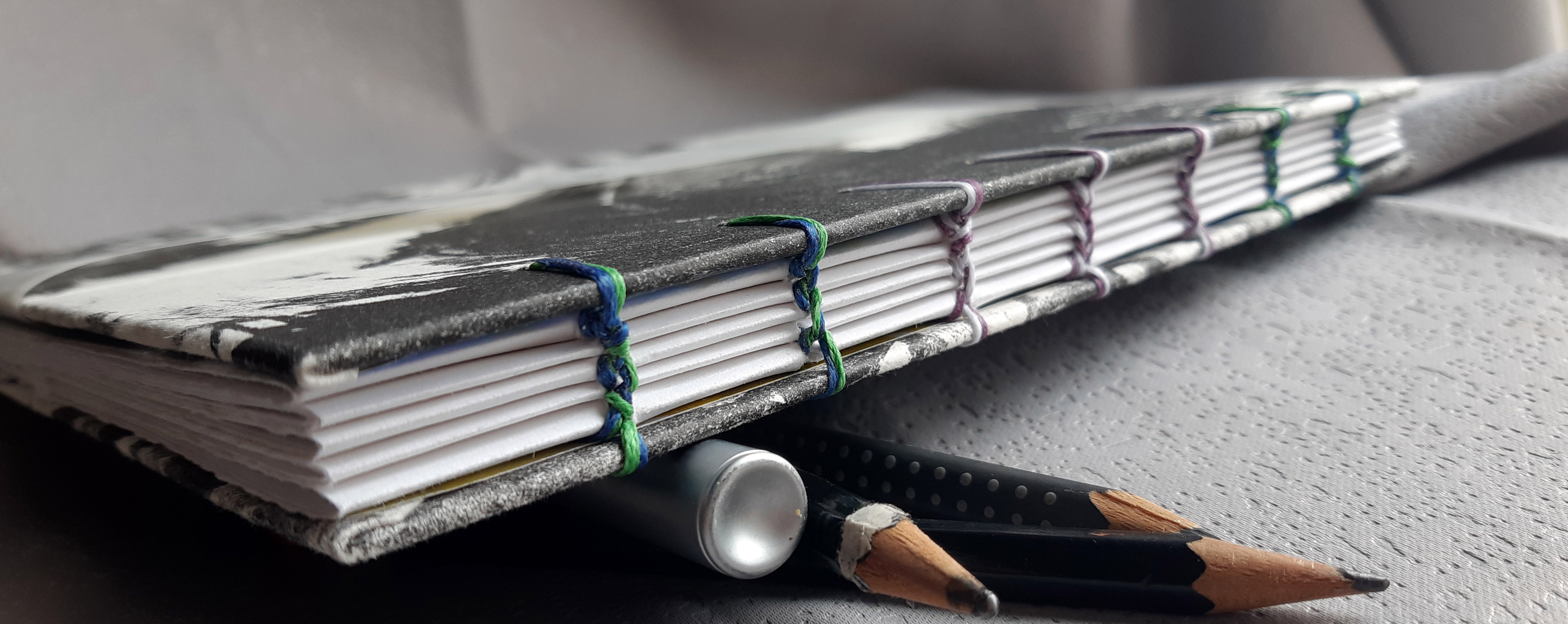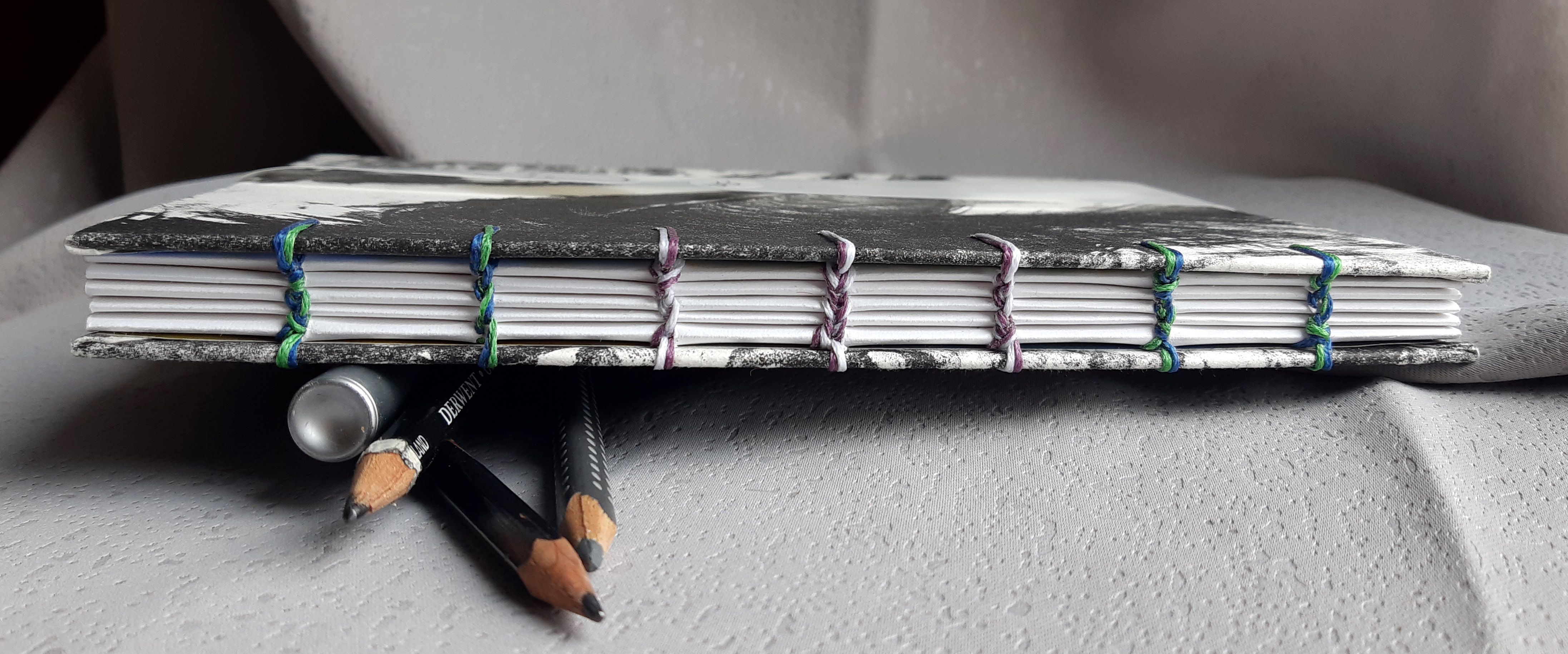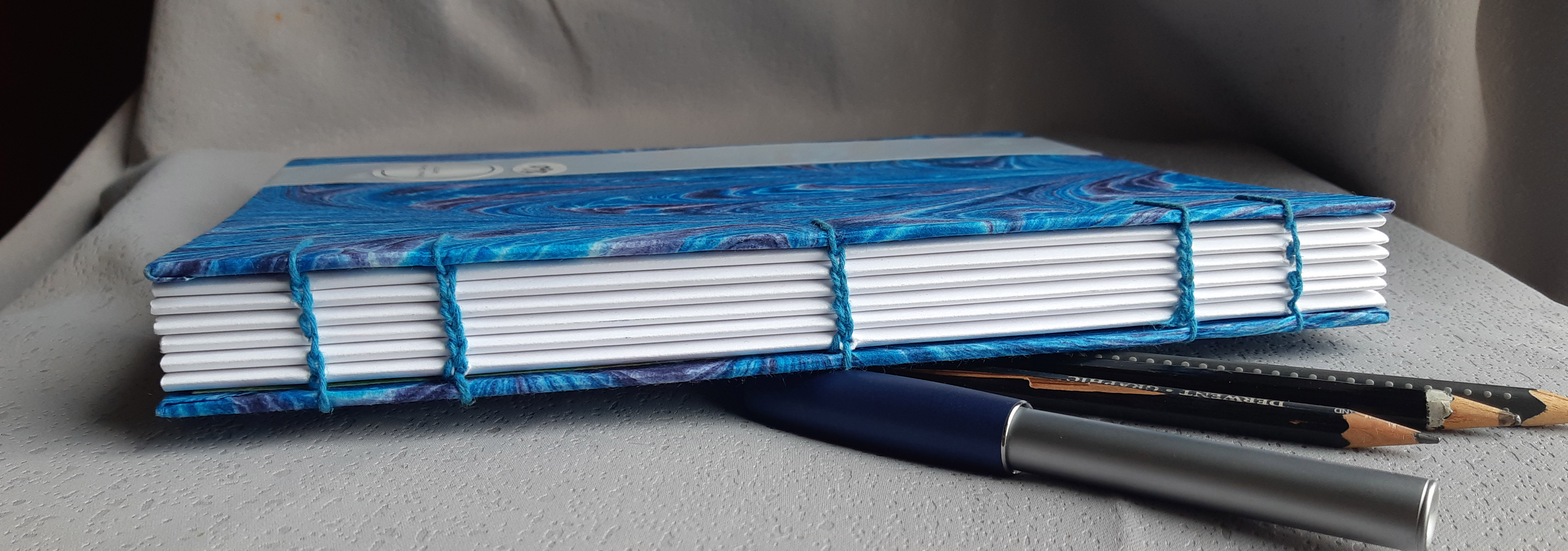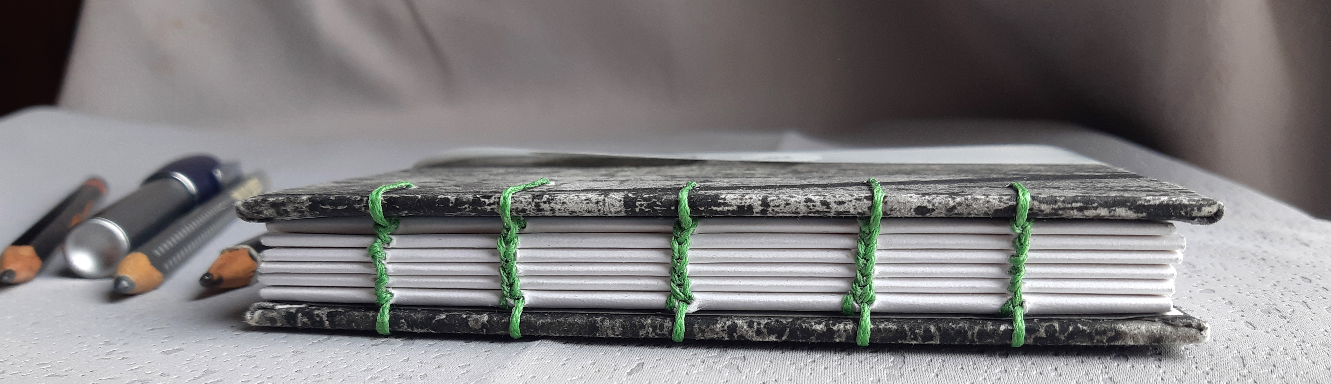 These books start out as large sheets of various materials that I break down in to the sizes needed to create each book, cover to cover. Each one is unique, not always perfect, but always ready to be put to use.